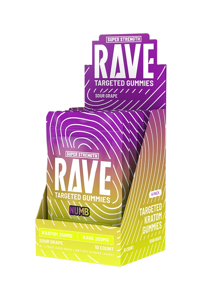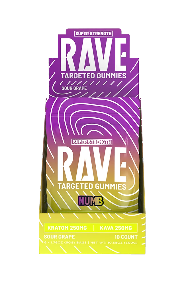 Our Numb Sour Grape gummies contain 250mg of kratom combined with 250mg of kava per piece.